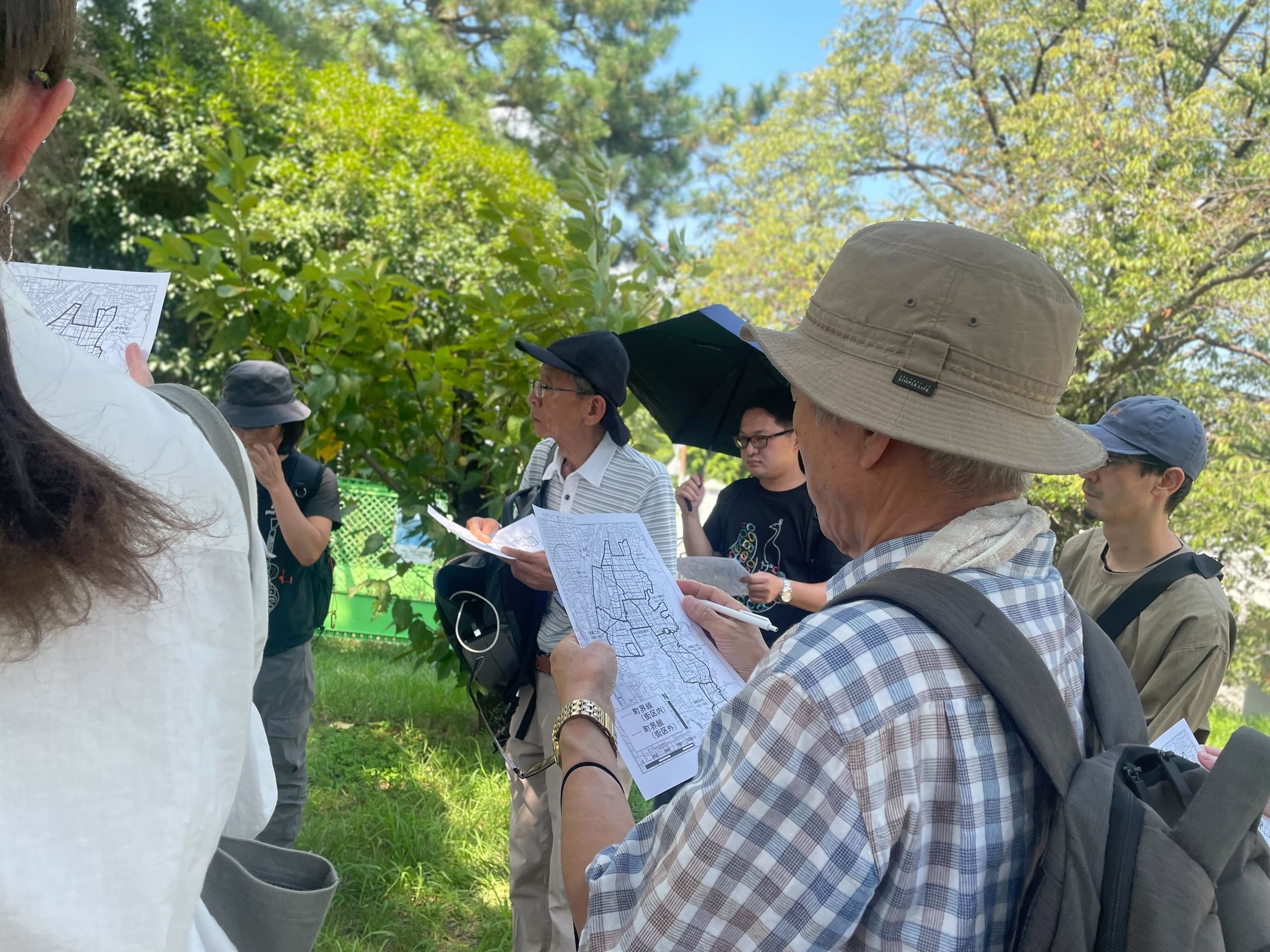 田中~一乗寺地区は、土地区画整理事業により大きく変わりました。このまちあるきでは、古地図と郷土史「田中の歴史」を使い、昭和初期の痕跡を辿り、その歴史を体感しました。