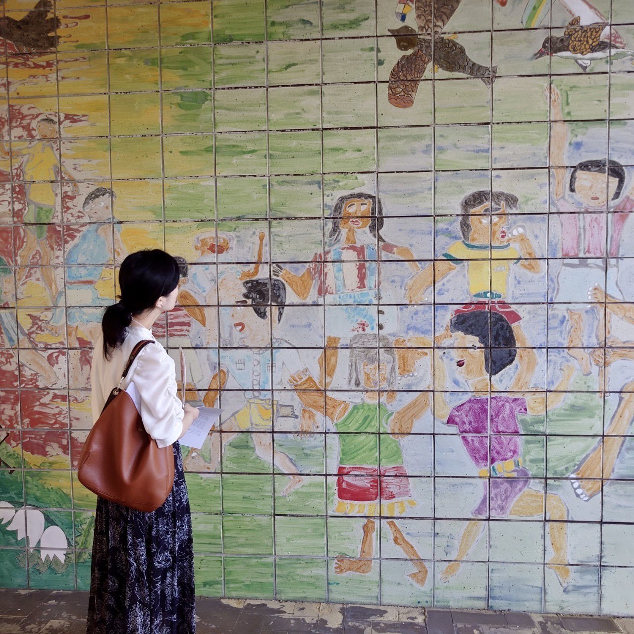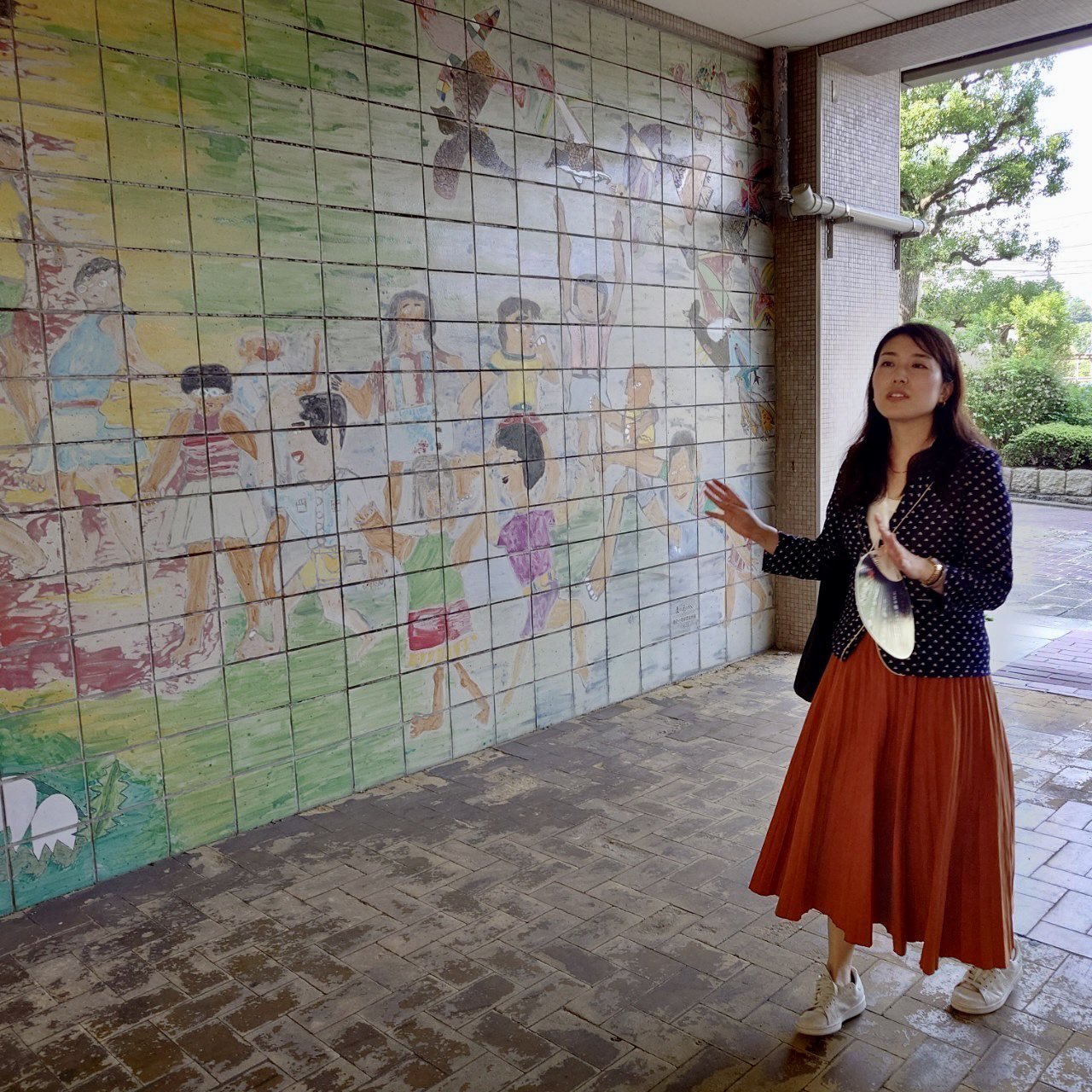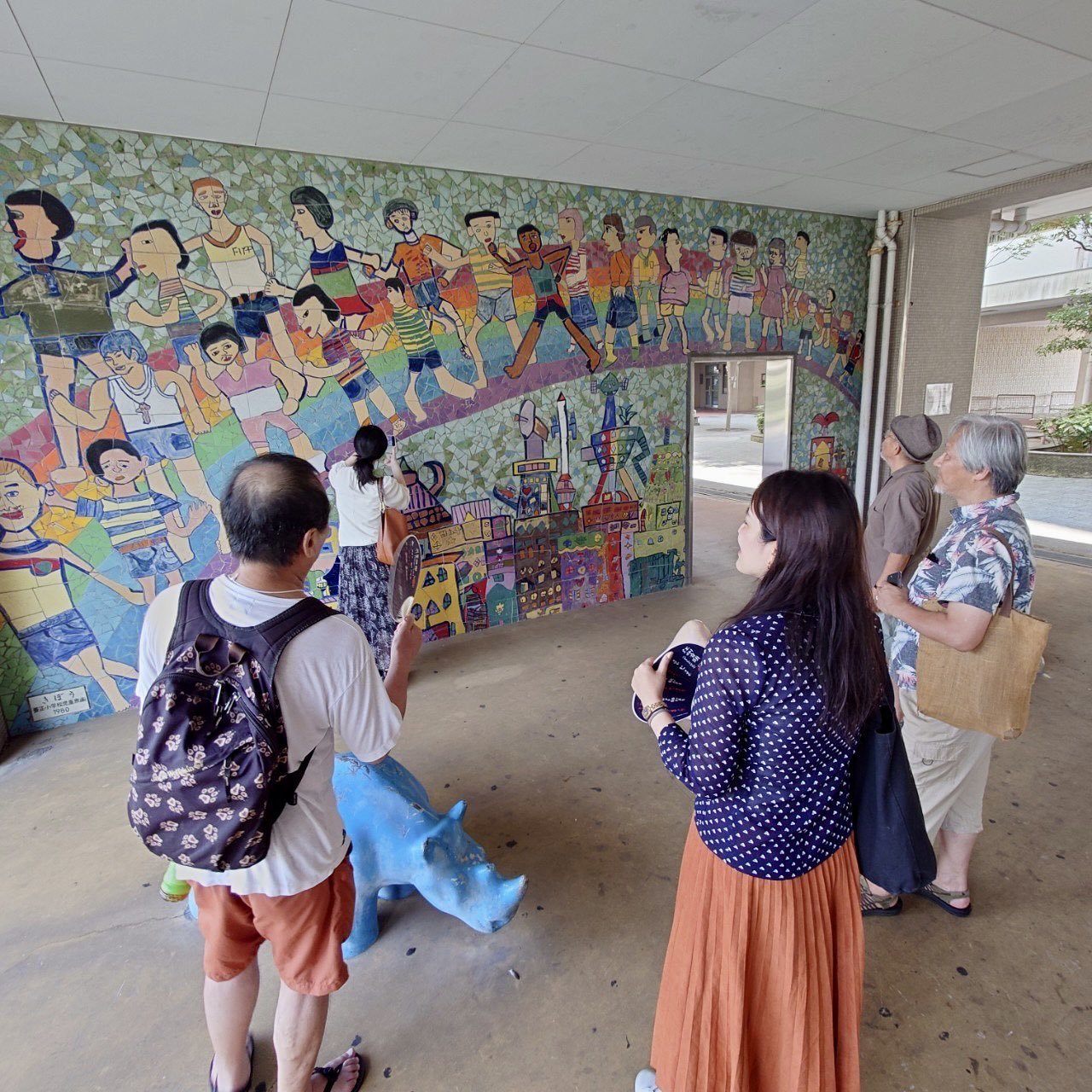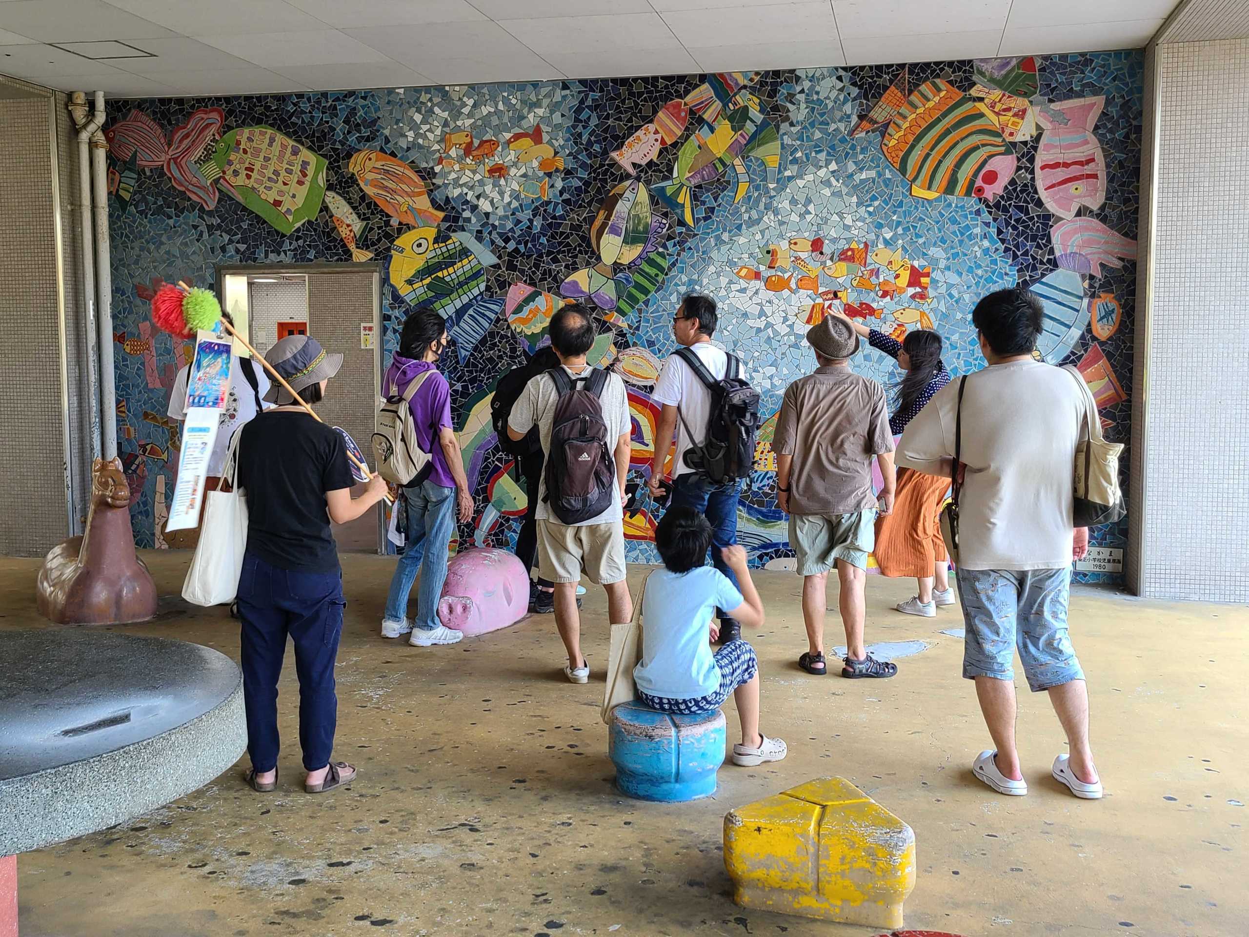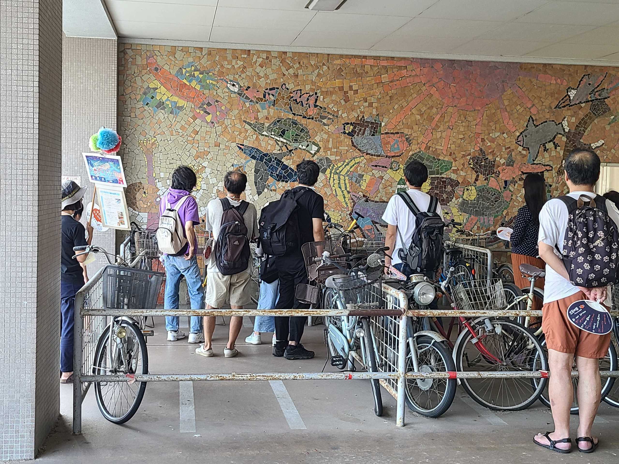 養正市営団地の一階部分にある壁画は、約50年前、地域の子どもたちが描いた絵をもとに設置されましたが、団地の取り壊しとともに姿を消す予定です。その壁画を鑑賞しました。