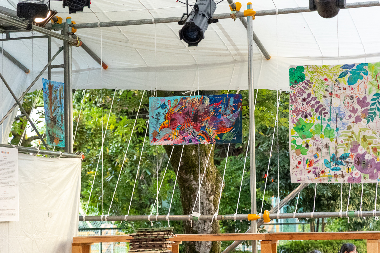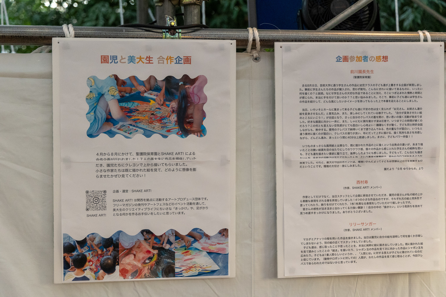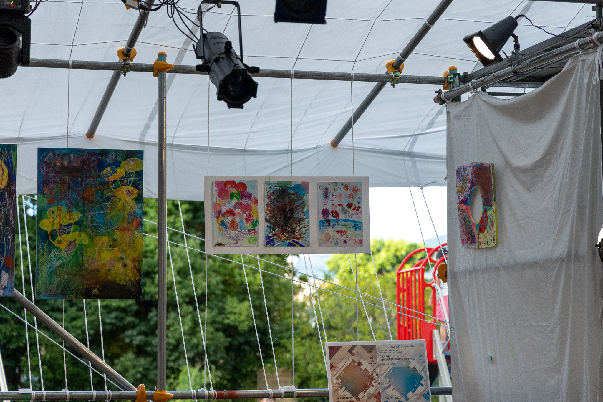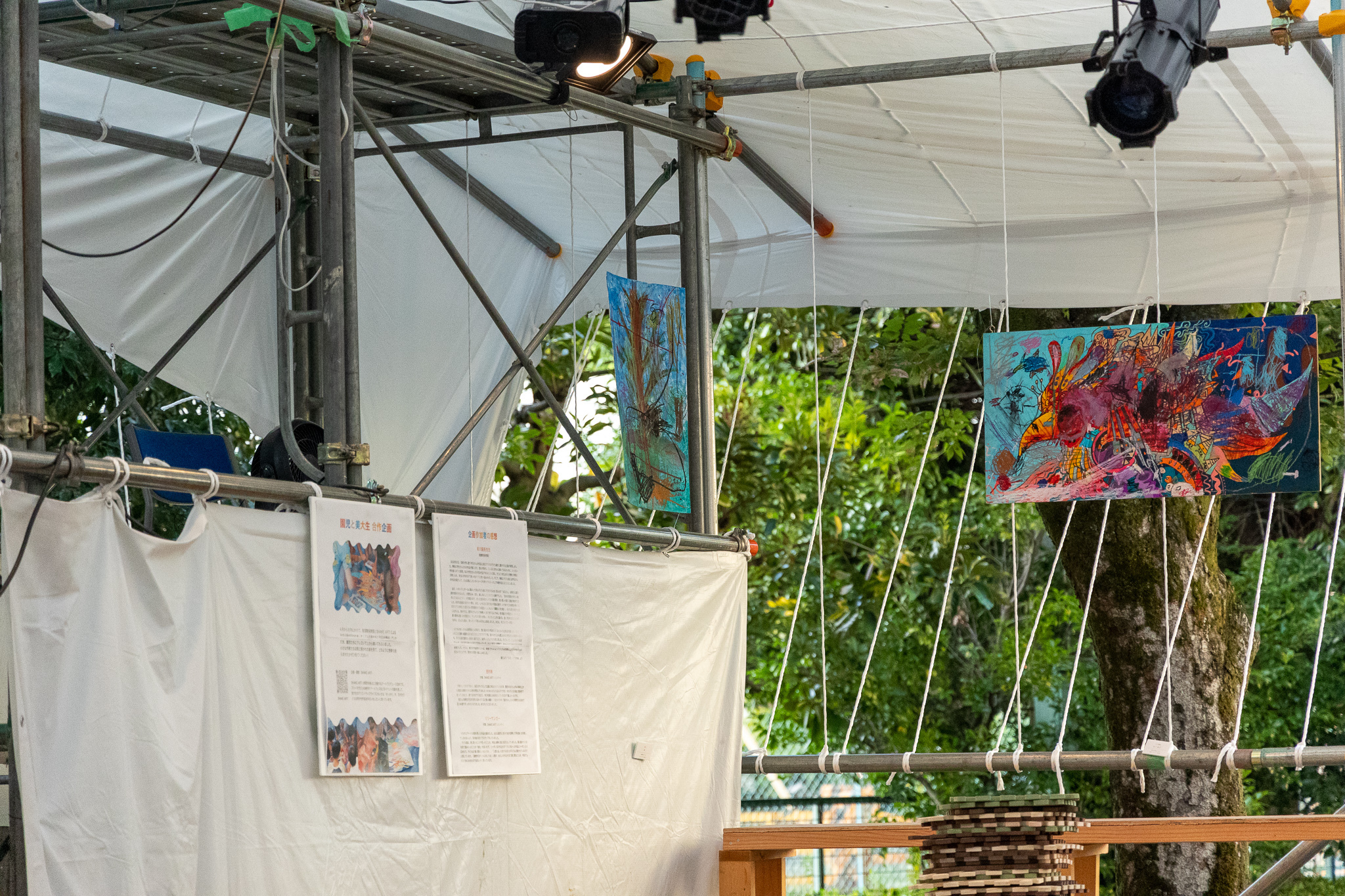 聖護院保育園と京都の美大生のコラボアート制作を野外特設舞台にて展示しました。