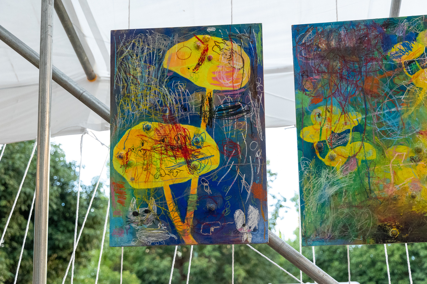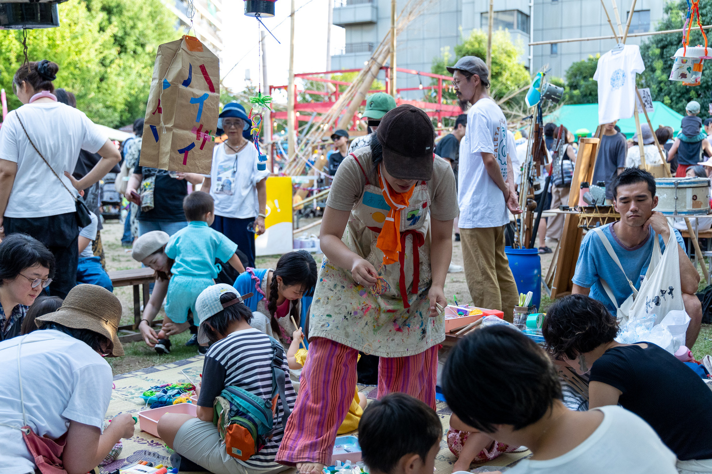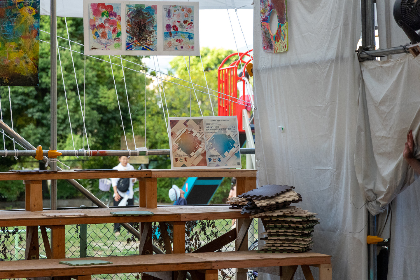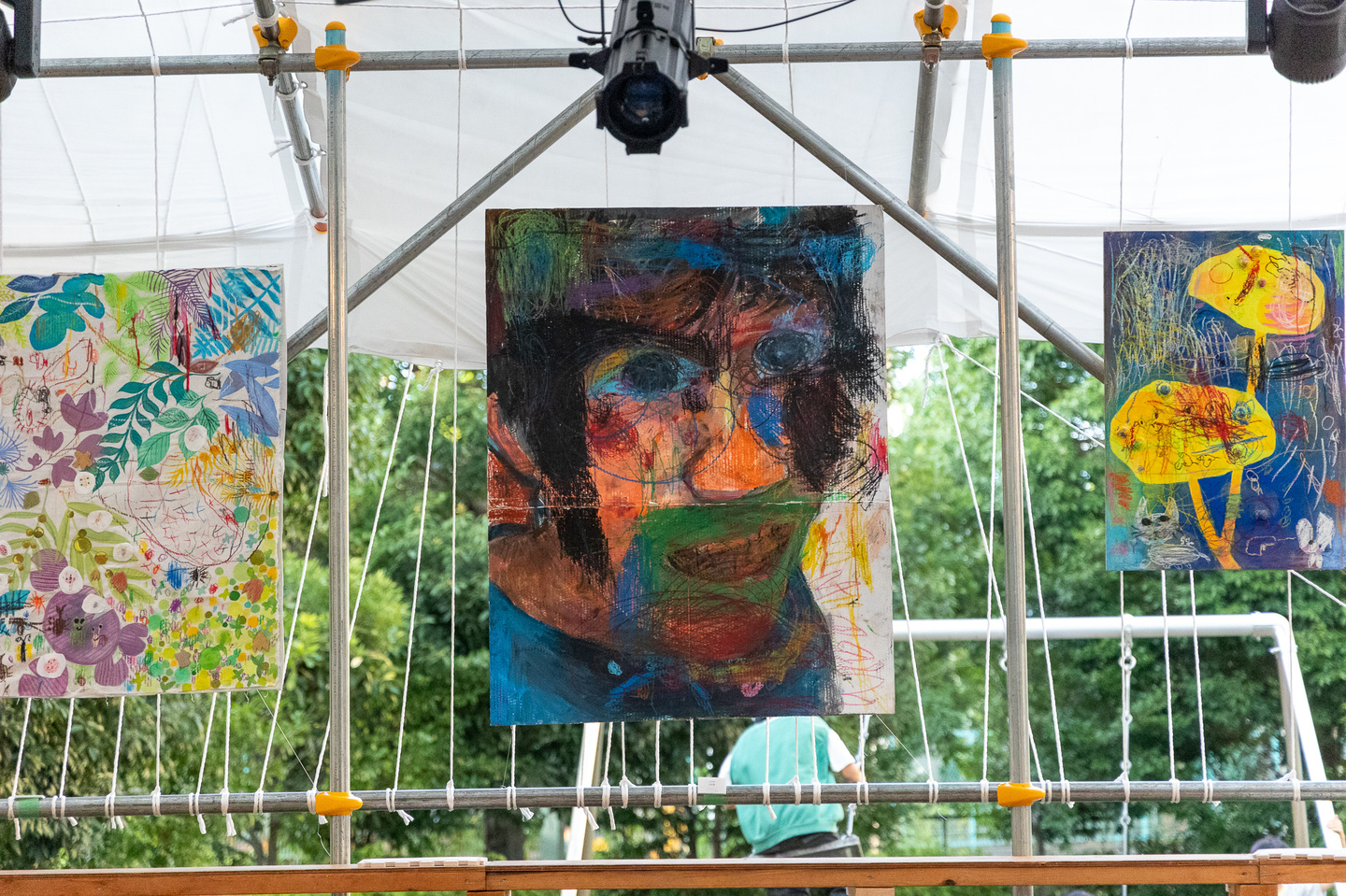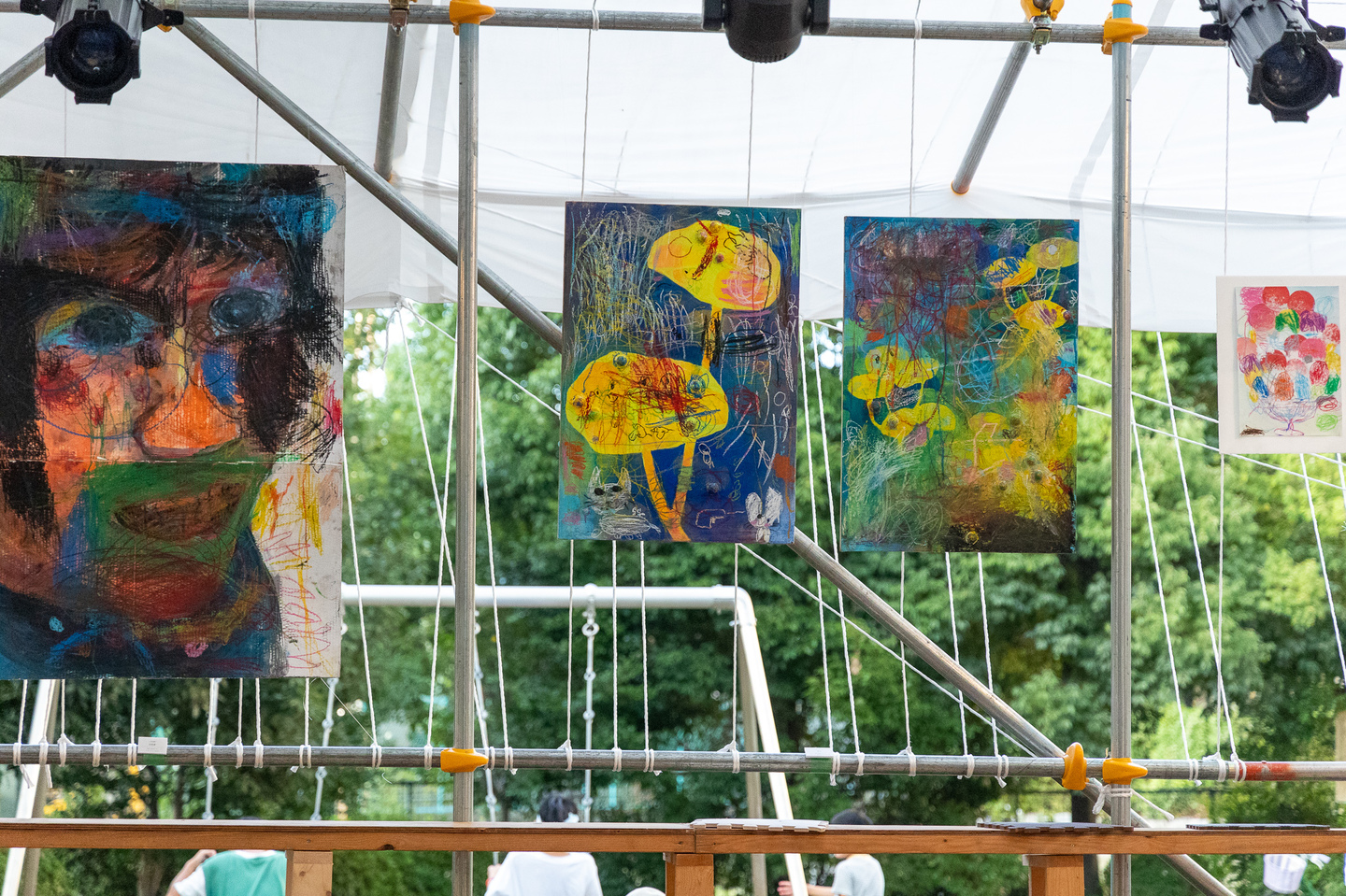 聖護院保育園と京都の美大生のコラボアート制作を野外特設舞台にて展示しました。